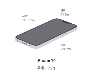 아이폰 14 시리즈 중에서 가장 작은 크기는 일반형이며 무게가 172g으로 아주 가볍습니다. 플러스 모델은 일반형보다 31g보다는 무겁지만 1.6cm 더 큰 디스플레이로 슈퍼 사이즈의 Super Retina XDR 디스플레이를 갖추었고 같은 크기의 pro max보다 저렴합니다.